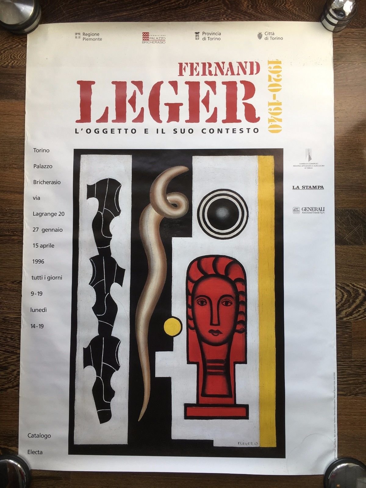 FERNAND LEGERposter originale della mostra L'OGGETTO E IL SUO CONTESTO 1920 - 1940tenutasi pressoPalzzo Bricherasio - Torino27 Gennaio - 15 Aprile 1996Formato 68x98 cm circain buono stato come da foto salvo bordi parzialmente danneggiatiP352