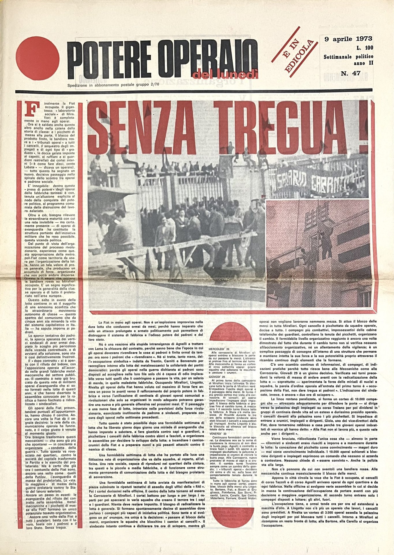 Potere operaio del lunedì. Settimanale politico. Anno III N. 47. 9 aprile 1973. SENZA TREGUA