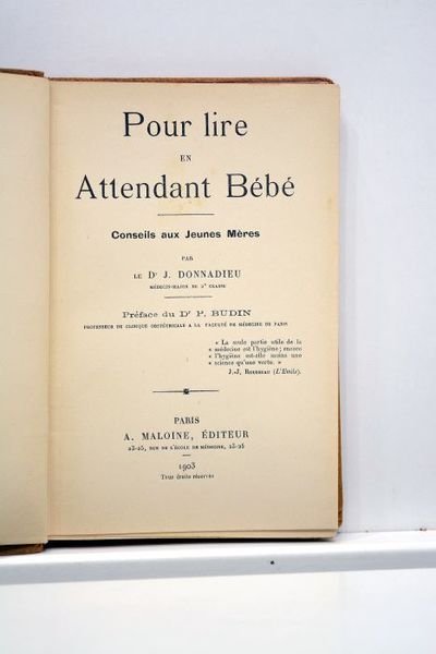 Pour lire en attendant bébé. Conseils aux jeunes mères. Préface du Dr P. Dubin.