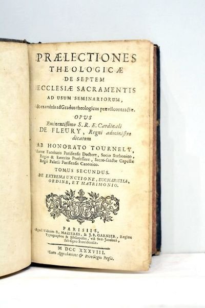 Praelectiones theologicae de septem ecclesiae sacramentis ad usum seminariorum et examinis ad Gradus theologicos praeviicontractae. Opus eminentissimo S.R.E. Cardinali De Fleury, regni administro dicatum ab Honorato Tournely. Tomus secundus. De extrema unctione, eucharistia, ordine et matrimonio.