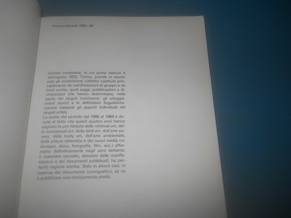 Germano Celant, Precronistoria 1966-69. Minimal art, pittura sistematica, arte povera, land art, conceptual art, body art, arte ambientale e nuovi media - Centro di Germano Celant, Stampa stiav, 1976 - copertina morbida, pag. 178, formato cm. 14 x 20 - otimo stato, compatto, leggeri segni esternamente, nessun ingiallimento pagine
