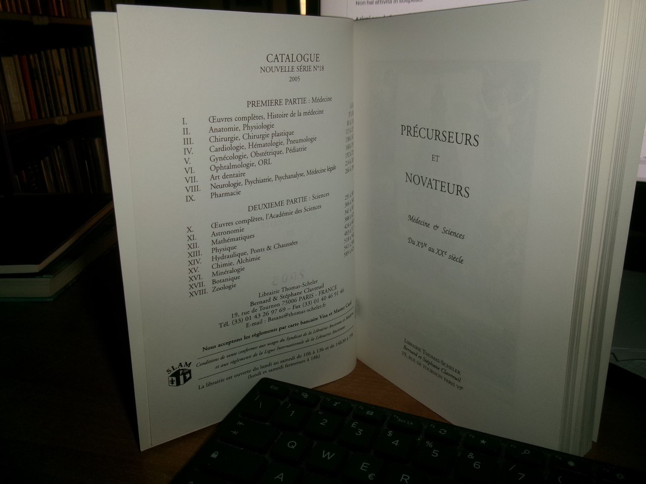 Librairie THOMAS-SCHELER Paris, Bernard et Stéphane Clavreuil, 2005. Précurseurs et Novateurs Livres Scientifiques Médicaux. In-8°, br. 392 pp. con numerose illustrazioni/fac-simili la maggior parte a colori n.t. Accurata descrizione di 621 libri rari e antichi con prezzi in euro. Come nuovo con testo in francese. Uff. A - II - 1