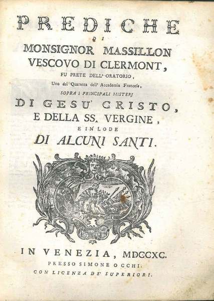 Prediche di Monsignor Massillon vescovo di Clermont. sopra i principali misteri di Gesù Cristo e della SS. Vergine e in lode di alcuni Santi