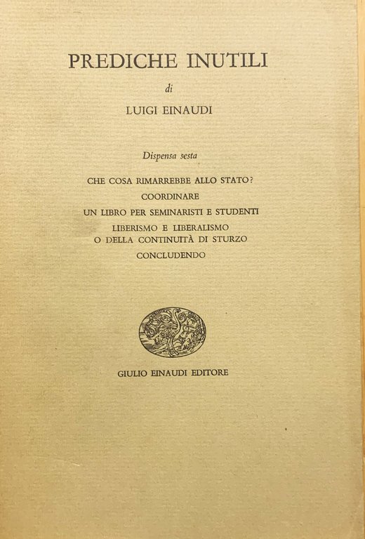 Prediche inutili. Dispensa sesta: Che cosa rimarrebbe allo Stato? - Coordinare - Un libro per seminaristi e studenti - Liberismo e liberalismo o della continuità di Sturzo - Concludendo