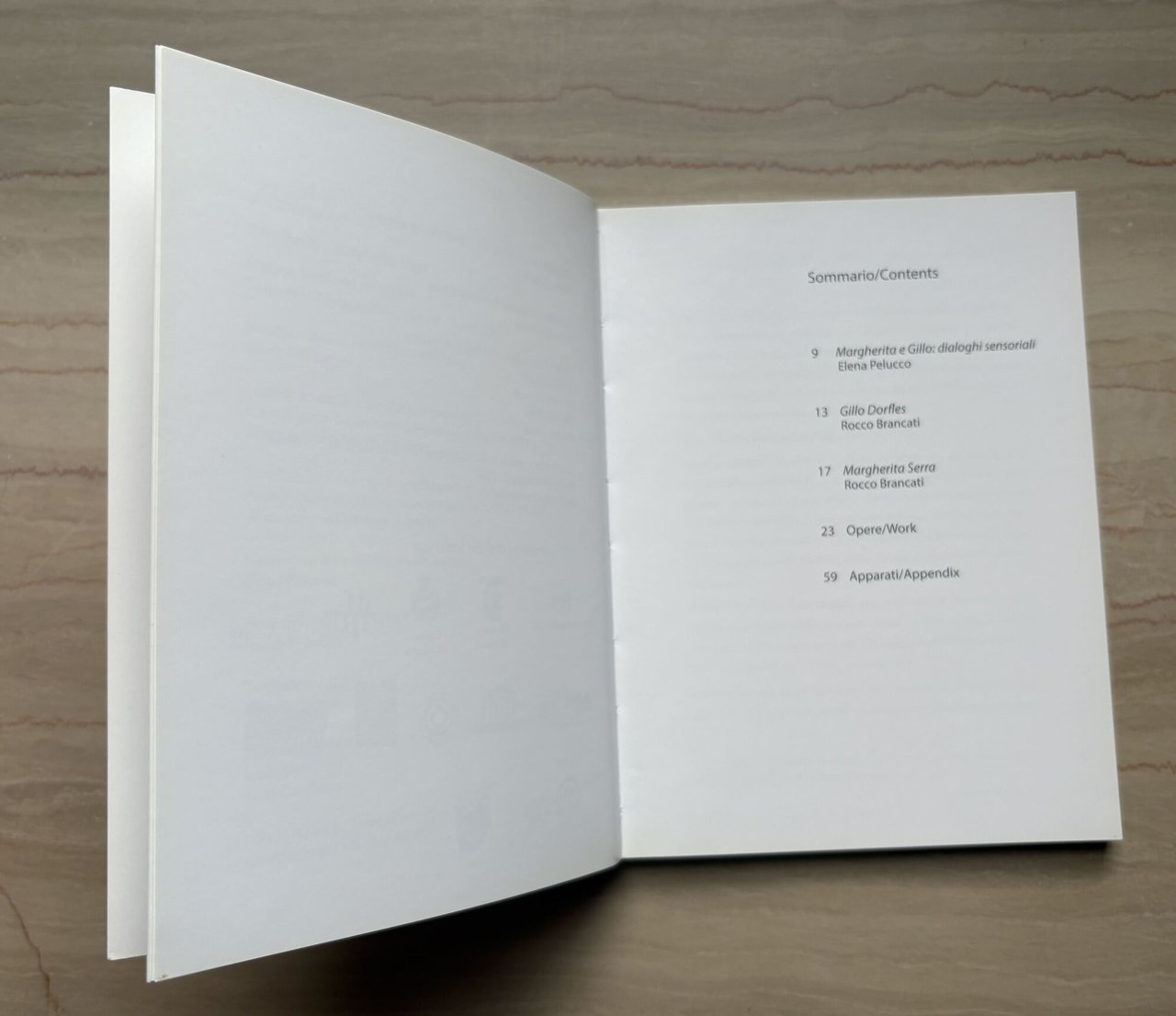 I ed.: Finito di stampare Aprile 2015. Catalogo della mostra a cura di / exhibition edited by Elena Pelucco, Matera, SpazioSculptureArt, 16 aprile - 17 maggio 2015 / 16 April - 17 May 2015. Testi in italiano/inglese. Traduzioni / Translations: Luigi Gussago. XVI/80/brossura satinata (Copertina /Cover: Gillo Dorfles, Interferenze/Interference, 2003, acrilico su tela/acrylic on canvas. Margherita Serra, Corsetto/corset, particolare 2003, marmo bianco di Carrara/white Carrara marble). Illustrazioni a colori f.t.. Progetto Grafico catalogo e inviti / Graphic designi catalogue, invitations: Sara Conchieri. Crediti fotografici / Photographs credits: Aurelio Heger, Vincenzo Lonati, Michele Turla, Matteo Zarbo. Stato di nuovo.