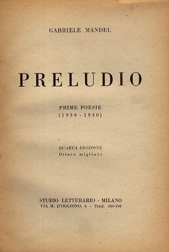Preludio. Prime poesie (1939-1940). Quarta edizione. Ottavo migliaio.