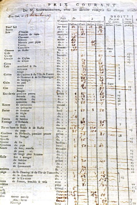 PRIX COURANT de N. SCHWEIGHAUSER, avec les droits compris sur chaque article.