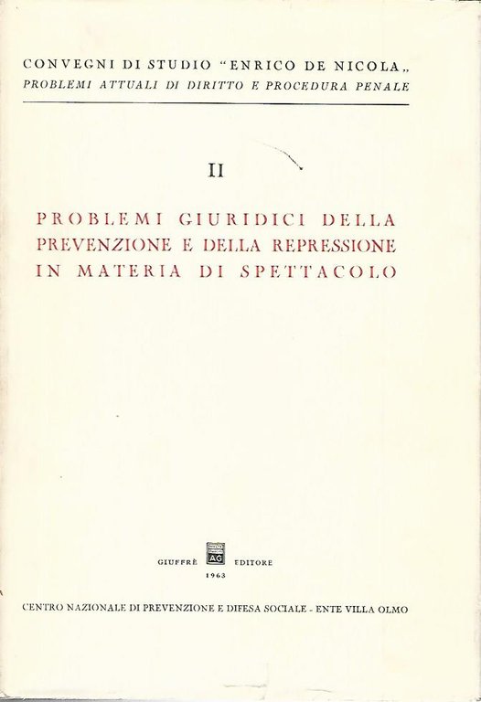 Problemi giuridici della prevenzione e della repressione in materia di spettacolo