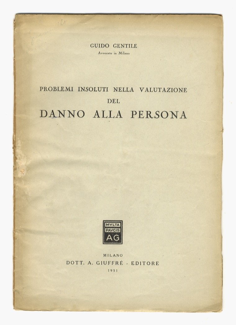 Problemi insoluti nella valutazione del danno alla persona. | Libri antichi e moderni | Gentile Guido.