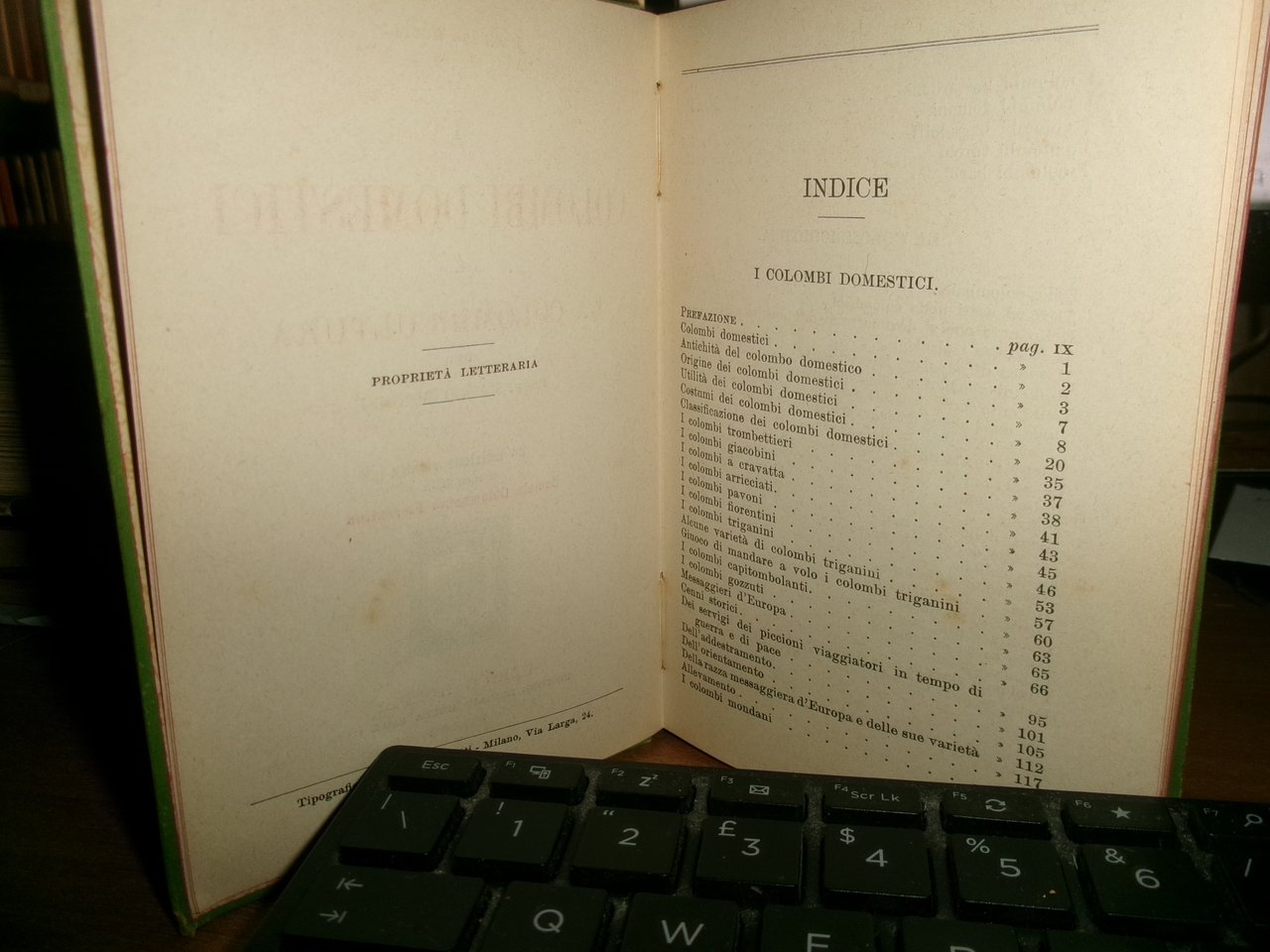 Prof. P. BONIZZI. COLOMBI DOMESTICI e LA COLOMBICULTURA HOEPLI 1902