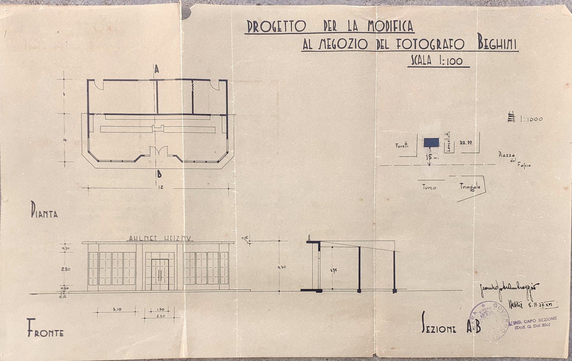 Progetto originale Modifica Negozio fotografo Beghini Dessiè Etiopia 1937