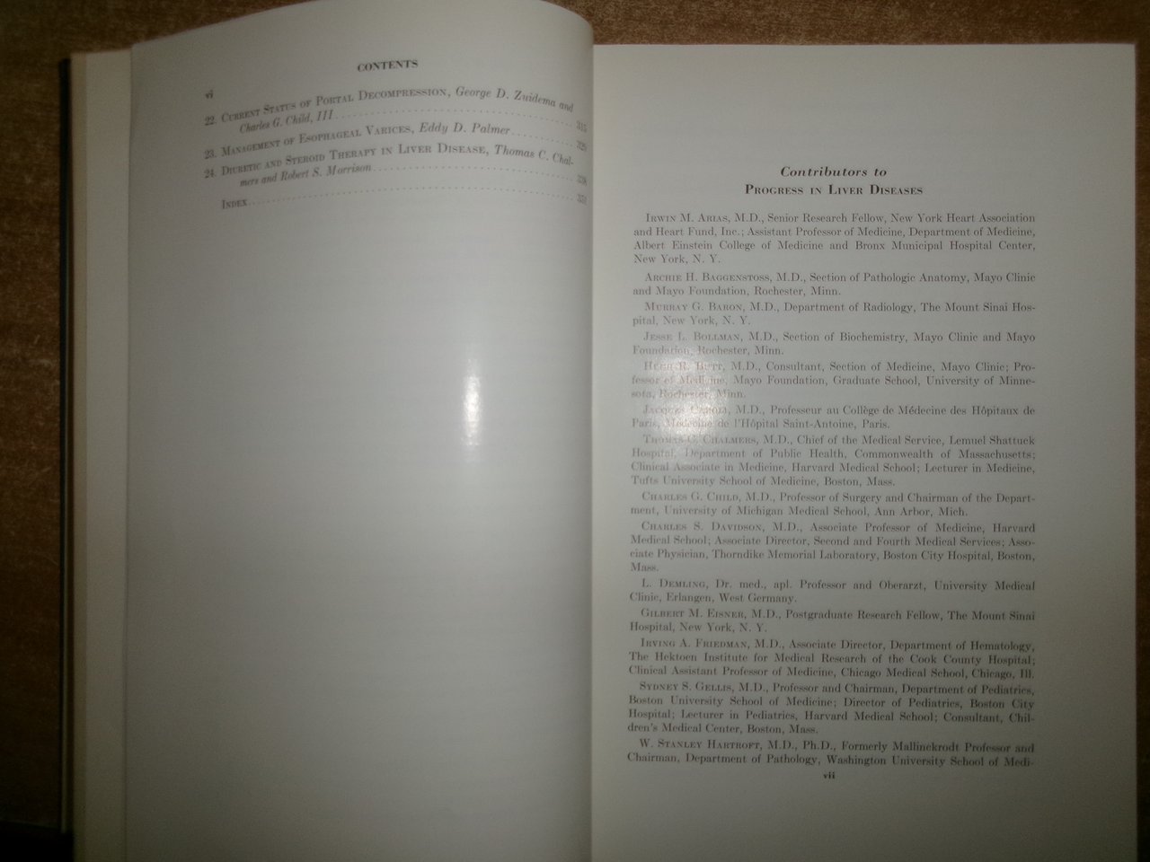 HANS POPPER e FENTON SCHAFFNER. New York and London, Grune & Stratton, 1961. Progress in LIVER DISEASES volume I. In-8°, tela edit. con titoli dorati. ix, 363 pp. con illustrazioni n.t. Bordo tela leggermente scolorito ma ottimo stato di conservazione con firma del Prof. Dott. Bruno Magnani al frontespizio. Testo in inglese. Uff stanz. a sinistra I - 5