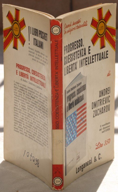 In 16. Dim. 18x12 cm. Pp. 122+34 (n.n.). Edizione del 1970 di questa opera di Andrei Dmitrievich Zacharov (1948), fisico e docente russo. L'opera riassume il pensiero politico del grande fisico: un manifesto del dissenso nell'URSS. Numero manoscritto al piatto posteriore. Etichetta al dorso. Brossura editoriale in discrete condizioni generali con lievi usure ai margini e dorso; piegatura verticale al piatto anteriore. Legatura in buone condizioni. All'interno le pagine si presentano in buone condizioni. Edition of 1970 of this work by Andrei Dmitrievich Zacharov (1948), russian physics and teacher. The work resumes the political thought of the great physics. Manuscripted number in the back plate. Label in the spine. Editorial cover in fair general conditions slightly worn in the edges and spine; vertical folding in the front plate. Binding in good conditions. Inside pages are in good conditions.