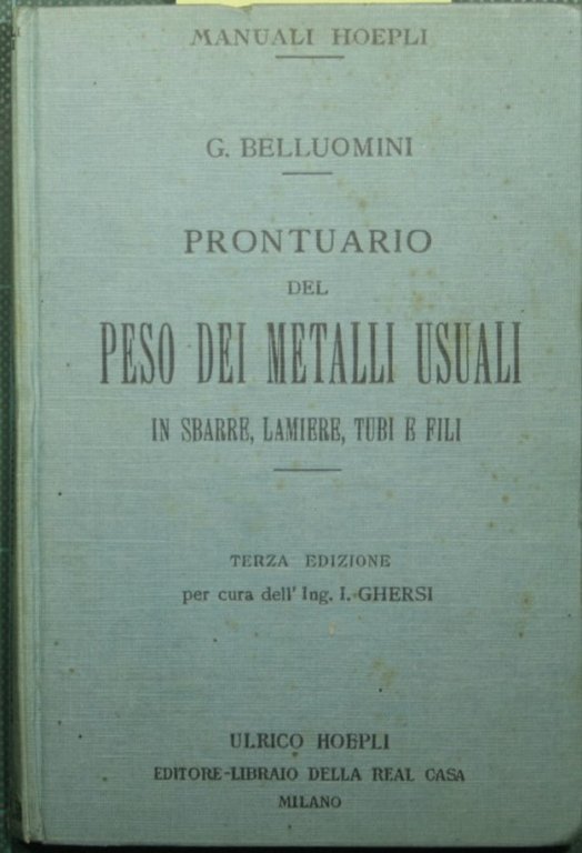 Prontuario del peso dei metalli usuali