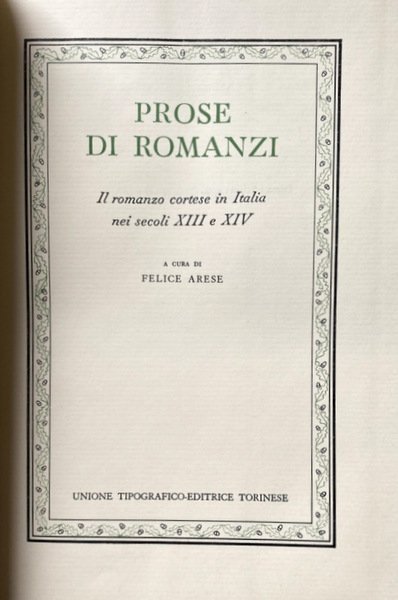 PROSE DI ROMANZI. IL ROMANZO CORTESE IN ITALIA NEI SECOLI XIII E XIV. A CURA DI FELICE ARESE