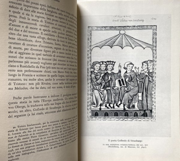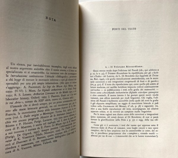 Soggetti: Letteratura italiana delle origini, Storia letteraria d'Italia, Il Duecento, Il romanzo di Tristano, La tavola ritonda, Codice della Mediceo-Laurenziana, Biografie, Diari, Memorie, Epistolari, Critica letteraria, Collezionismo, Libri da collezione, Classici, Romanzo, Prosa, Trecento, Raccolte, Antologia, Libri Vintage, Edizioni pregiate, Opere generali, Ferdinando Neri, Mario Fubini, Diari, Lettere, Medioevo, Cultura medievale, Storia, Tavola Ritonda, Modena, Comuni, Miniature, Tristano Riccardiano, Tristano Veneto, Merlino, Miti, Leggende, Epica, Battaglie, Medieval Arthurian Literature, Tavola rotonda, Arthurian hero, Re Artù, Capolavori dimenticati, Anonimo, Leggenda tristaniana, Prosa francese, Eroi, Cavalieri, Isotta, Amore cortese, Filtro, Lamorak, King Arthur, King Mark, Cornovaglia, Cornwall, Tristan en prose, Damigelle, Irlanda, Fol amor, Verziere, Ordalia, Duelli, Caerdino, Nani, Buffoni, Giullari, Re, Corti, Iseut, Brangania, Brangien, Frocin, Bianche Mani, Rivalen, Biancofiore, Bleunwenn, Moroldo, Morholt, Lancillotto e Ginevra, Chrétien de Troyes Cavaliere della carretta, Tommaso d'Inghilterra, L'Histoire de Monseigneur Tristan, Jaufré, Rustichello da Pisa, Panciatichiano, Corsiniano, Messere, Lingua veneta, Ciclo bretone, Romanzo cavalleresco, Istoria de Tristano, Novellino, Decameron, Béroul, Materia di Britannia, Gottfried von Straßburg, Uther Pendragon, Morgana, Morgan Le Fay, Narrativa classica, Poemi, Literary Criticism, Italian Literature, Classics, Romance, Prose, Two hundred, Three hundred, Collections, Anthology, Vintage Books, Fine Editions, General Works, Diaries, Letters, Medieval, Medieval Culture, History, Ritrus Table, Municipalities, Miniatures, Merlin, Mythos, Legends, Epic, Battles, Round Table, Forgotten Masterpieces, Anonymous, Tristanian Legend, French Prose, Heroes, Knights, Isolde, Courteous Love, Damsels, Ireland, Lancelot and Geneva, Knight of the Cart, Venetian language, Breton cycle, Romance, Classic fiction, Poems, Collectibles, Goffredo di Strasburgo