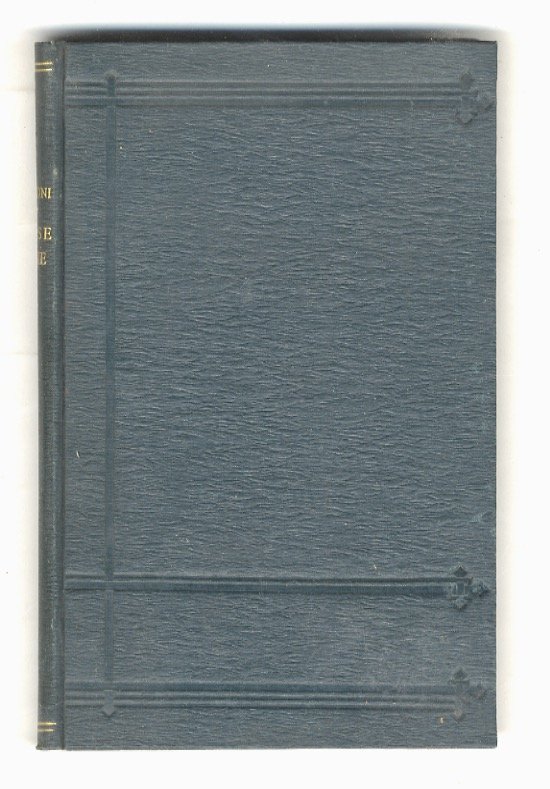 Milano, E. Rechiedei & C.i Editori, s.d.(1869), in-16, tela verde coeva con impressioni a secco ai piatti, titolo e filettature oro al dorso, sguardie marmorizzate, pp. 258, (2). Al verso dell'occhietto, in calce: "La Ditta F.lli Rechiedei, successa a Giuseppe Redaelli, avendo acquistato l'esclusivo diritto di ristampare tutte le opere di Alessandro Manzoni fin'ora pubblicate, dichiara di voler usare con tutto il rigore dei diritti dalla legge stessa garantiti contro qualunque specie di Contraffazione". Se di "proprietà intellettuale" si comincia a parlare in Italia nel 1826 (Stato Pontificio e Regno di Sardegna), 1828 (Regno delle Due Sicilie), il diritto dei diversi stati pre-unitari fu unificato nel 1865.