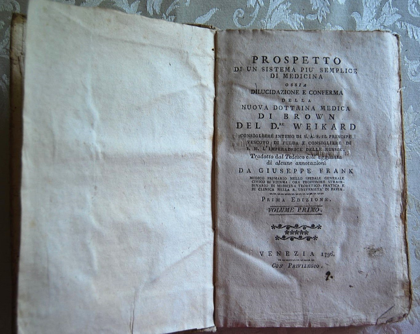 PROSPETTO DI UN SISTEMA PIU' SEMPLICE DI MEDICINA. OSSIA DILUCIDAZIONE E CONFERMA DELLA NUOVA DOTTRINA MEDICA DI BROWN.