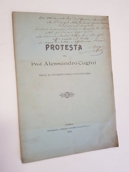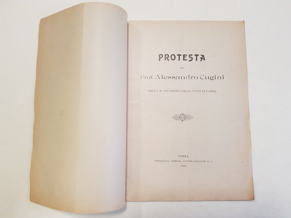 Protesta del Prof. Alessandro Cugini della R. Università degli Studi di Parma.
