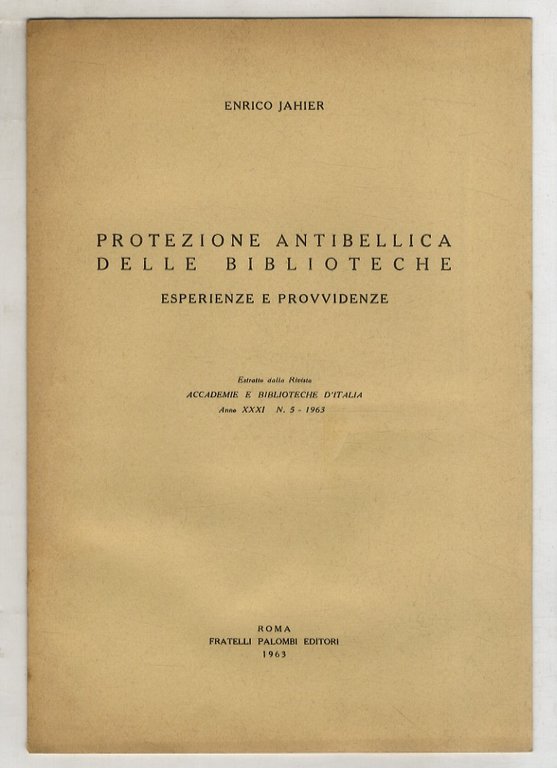 Protezione antibellica delle biblioteche. Esperienze e provvidenze.