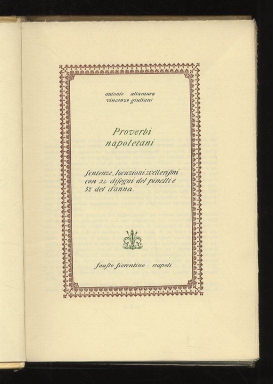 Napoli, Fausto Fiorentino, 1966, in-8 max, br. editoriale con sovraccopera in velina semi-trasparente (questa con mancanze), pp. 384, (4). Con vignette nel testo e glossario. Minimi difetti al dorso, altrimenti ottimo esemplare.