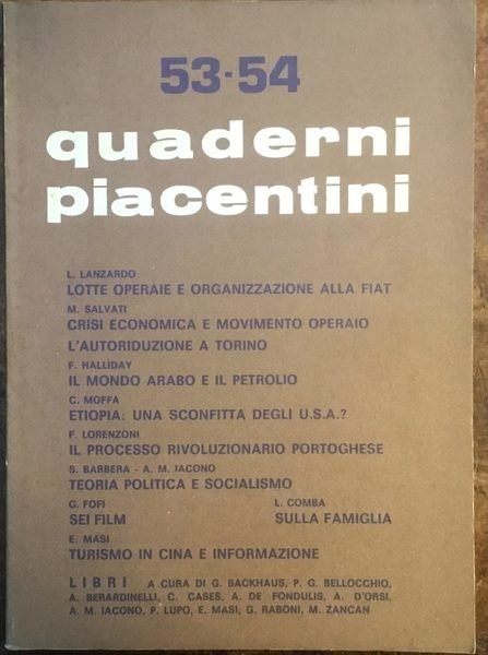 Quaderni Piacentini. N. 53-54, anno XIII, dicembre 1974