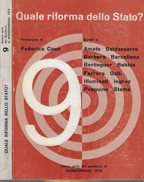 Numero "9" della collana "Quaderni di mondoperaio". Brossura illustrata e leggermente ingiallita dal tempo mostrante segni di usura con conseguenti e leggere abrasioni. Pagine leggermente ingiallite dal tempo. Il volume potrebbe contenere timbri ed etichette di biblioteca, regolarmente acquisito dalla nostra libreria. Numero pagine 174.