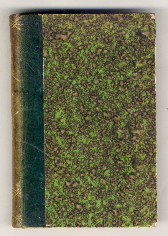 Bologna, Tipografia Fava e Garagnani, 1881, in-16, legatura coeva in mezza pelle, con titolo ed eleganti fregi oro al dorso, piatti marmorizzati, tagli spruzzati di rosso, pp. 388. Conservata la copertina editoriale anteriore in br. Edizione in 200 esemplari fuori commercio con invio manoscritto e siglato dall'Autore: "all'Esimio Sign.re Bertocchi". Cartellino di appartenenza: Prof. Giulio Cesare Pietra. Ottime condizioni. Pepoli (1796-1881), che fu poeta (anche librettista) e politico (mazziniano in gioventù e massone) assai attivo nella vita culturale bolognese, è anche noto per l'amicizia con Leopardi.