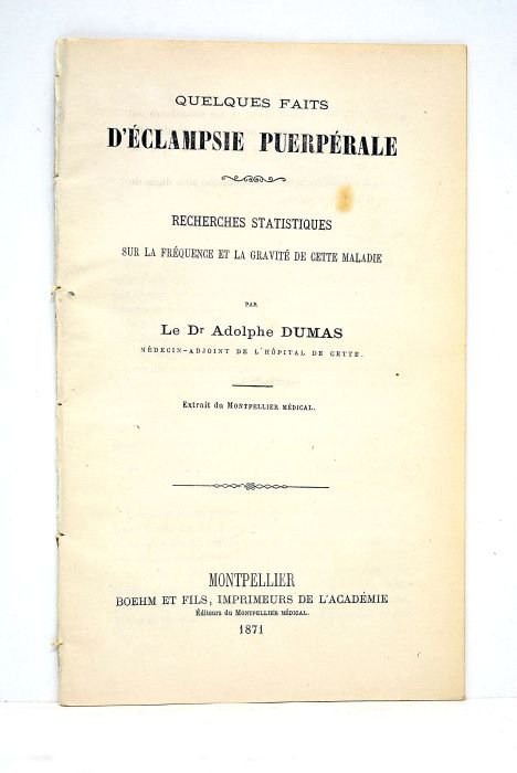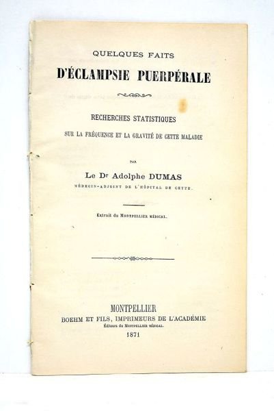 Quelques faits d'éclampsie puerpérale. Recherches statistiques sur la fréquence et la gravité de cette maladie. Extrait du Montpellier Médical.