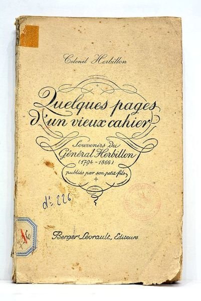 Quelques pages d'un vieux cahier. Souvenirs du Général Herbillon (1794-1866). Publiés par son petit-fils.