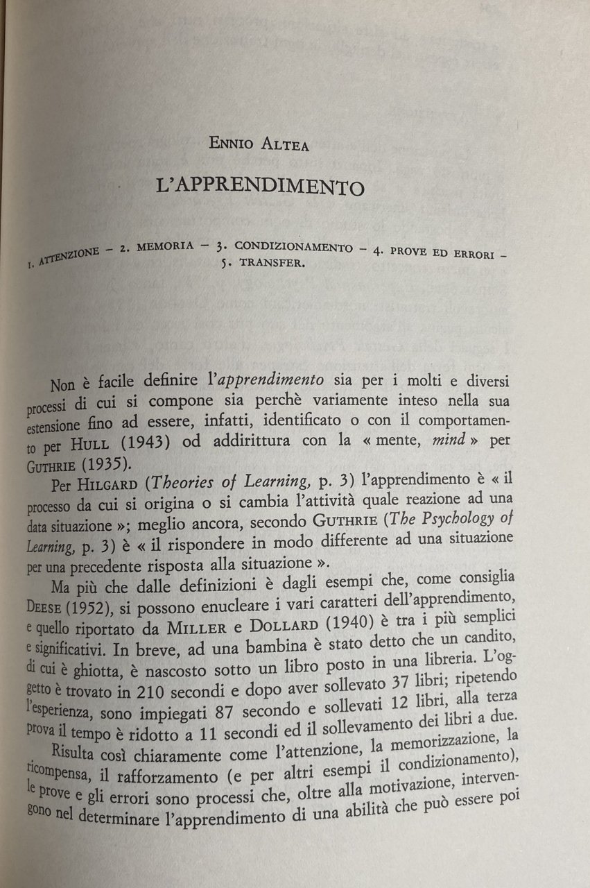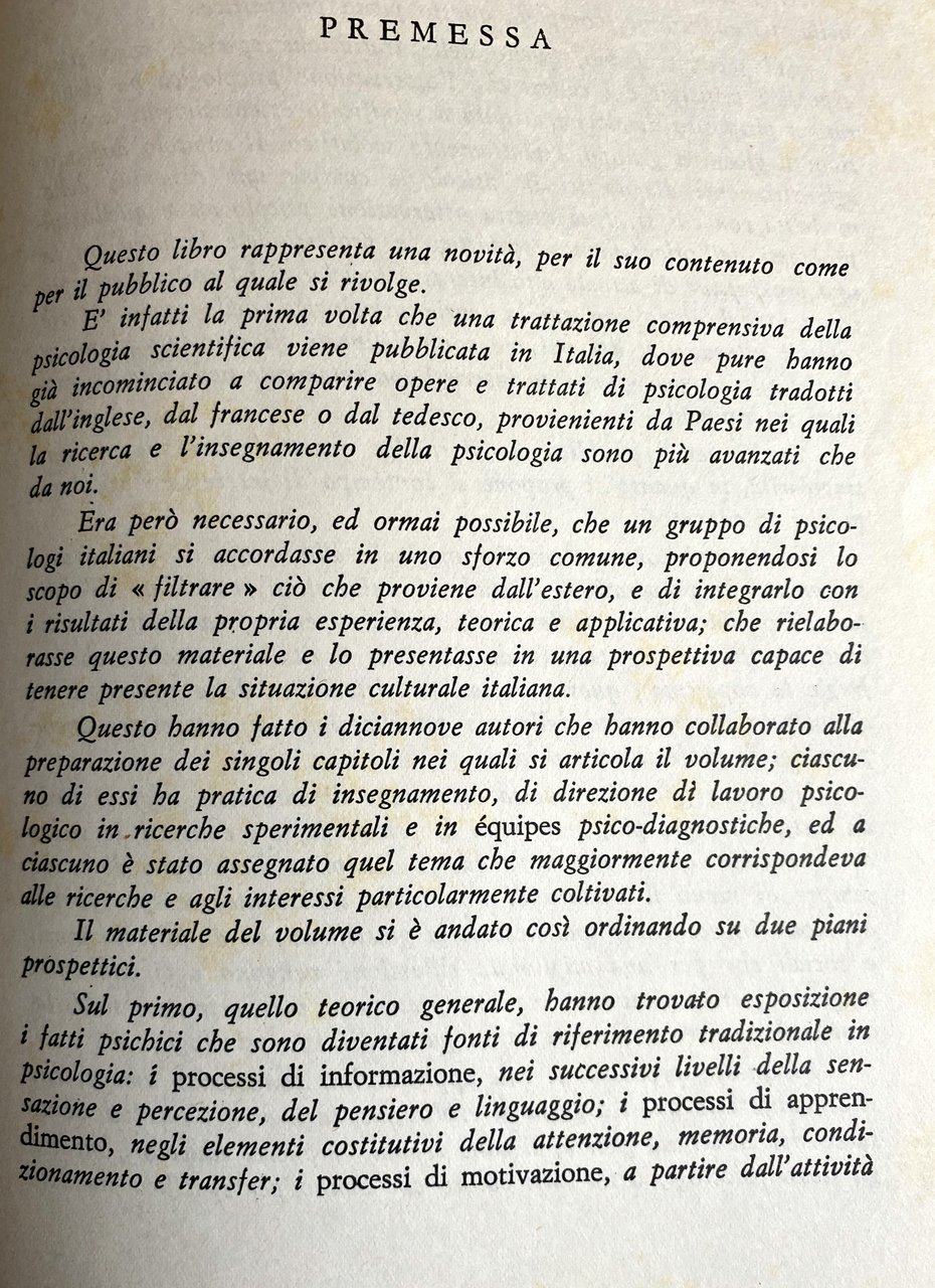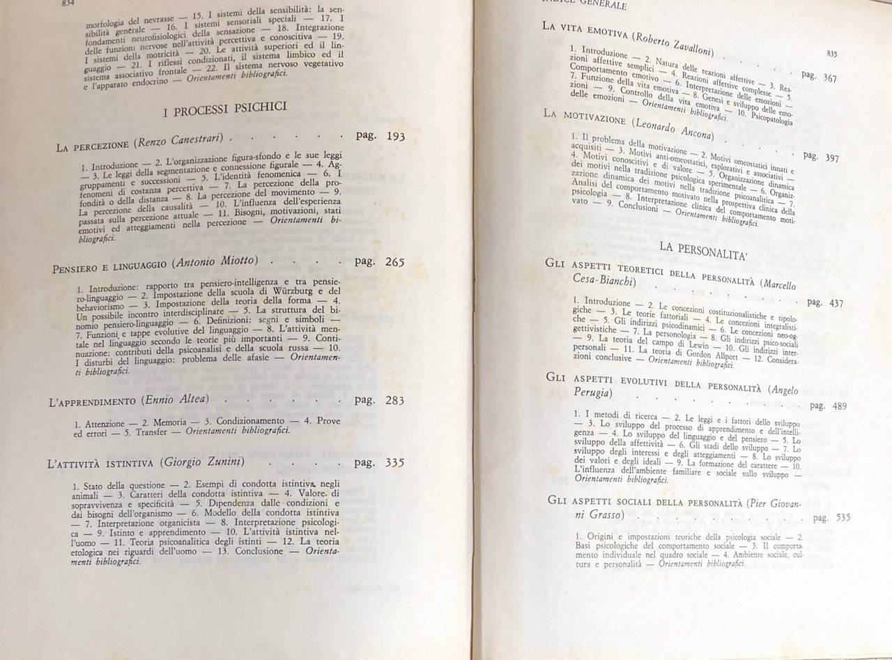 - Didattica, Manuali, Psicologia scientifica, Psicologia generale, Storia della psicologia, Psicologia sperimentale, Manuale di psicologia, Processi cognitivi, Percezione, Pensiero, Apprendimento, Memoria, Motivazione, Personalità, Educazione, Orientamento scolastico, Psicodiagnostica, Psicologia applicata, Pedagogia, Scienze umane, Testi universitari, Testi accademici, Psicologia del Novecento, Formazione insegnanti, Guide, Anni Sessanta, Vintage, Libri rari, Fuori catalogo, Enciclopedie, Saggi, Collezionismo, Insegnamento, Metodo, Psichismo, Psicologia filosofica, Behaviorismo, Psicologia contemporanea, Psicofisiologia, Riflessologia, Correnti psicologiche, Scuola di Würzburg, Cognitivismo, Gestalt Theorie, Teoria differenziale, Funzionalismo, Piaget, Psicologia genetica, Freud, Psicoanalisi, Bibliografia di riferimento, Condizionamento, Funzioni motorie, Psicologia comparata, Intelligenza, Psicologia sociale, Psicologia clinica, Biologia, Nozioni, Concetti, Sistema nervoso, Evoluzione, Eccitamento, Medicina, Sinapsi, Recettori, Sensibilità, Sistemi sensoriali, Neurofisiologia, Motricità, Riflessi condizionati, Sistema limbico, Linguaggio, Sistema vegetativo, Sistema endocrino, Identità, Fenomeni, Movimento, Causalità, Esperienza, Bisogni, Disturbi psichici, Nevrosi, Afasia, Definizioni, Segni e simboli, Attenzione, Transfer, Istinto, Carattere, Sopravvivenza, Organismo, Interpretazione, Organicismo, Istinti, Psicologia etologica, Vita interiore emotiva, Relazioni affettive, Comportamento, Controllo, Psicopatologia, Concezioni, Psicodinamica, Teorie fattoriali, Personologia, Ricerca, Affettività, Stadi di sviluppo, Atteggiamenti, Influenza, Ambiente familiare, Famiglia, Infanzia, Educazione religiosa, Adolescenza, Attività ludica, Gioco, Bambini, Immaginazione, Fantasia, Diagnostica, Testing, Gruppo, Colpa, Appartenenza, Società, Giovani, Operatori O.S.P., Ritardati, Disabilità, Malattia mentale, Trauma, Sogni, Diagnosi, Trattamento, Terapia, Cura