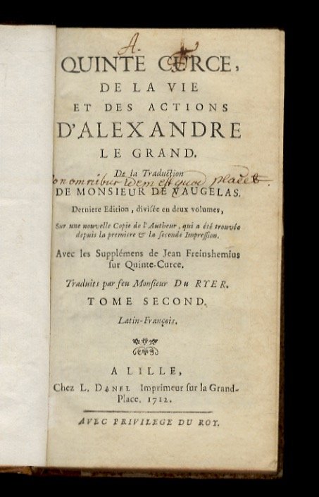 Quinte Curce de la vie et des actions d'Alexandre le Grand. De la traduction de monsieur de Vaugelas (.) Avec les supplemens de Jean Freinshemius sur Quinte Curce traduits par feu Monsieur Du Ryer.