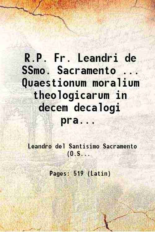 R.P. Fr. Leandri de SSmo. Sacramento . Quaestionum moralium theologicarum in decem decalogi praecepta : pars prima [et] in ordine sexta . 1662