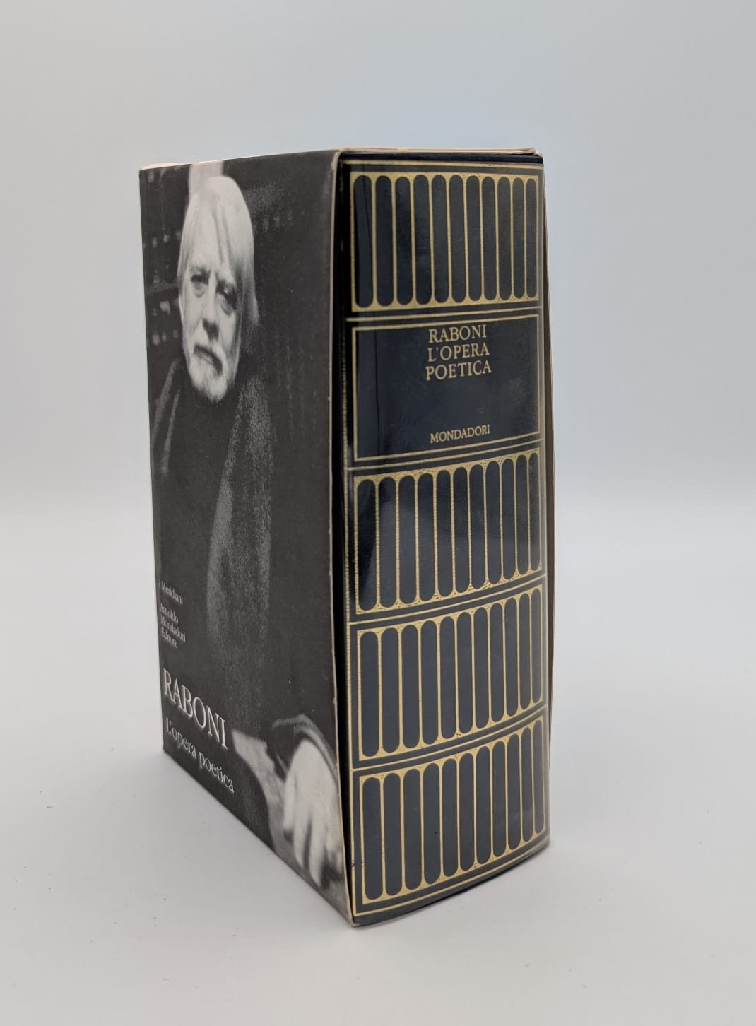 Raboni Giovanni: L'opera poeticaIn-8 (Cm 18 x 11), pp. CLI-1871, legatura editoriale con acetato protettivo, astuccio editoriale illustrato. A cura e con un saggio introduttivo di Rodolfo Zucco ed uno scritto di Andrea Zanzotto. Collana i Meridiani. Firma di possesso alla prima carta, e pieghetta verticale a qualche p. iniziale. OTTIMO