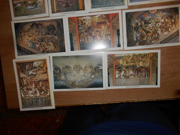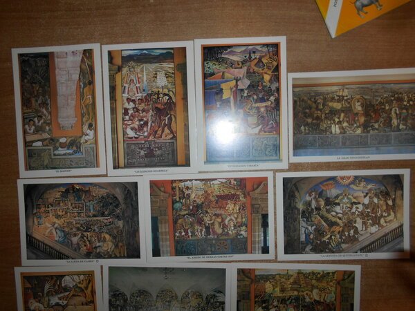 (Raccolta). Breve Descripcion del Palacio Nacional y Murales de DIEGO RIVERA. Mexico (Raccolta di 10 postales a colori in-16° + opuscolo in 4 lingue entro cartellina illustrata. Come nuovo. Neg. esot. mob. 60 entro busta trasp.