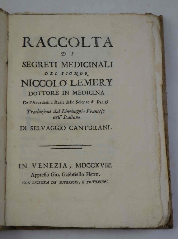 Raccolta di segreti medicinali... traduzione dal Linguaggio Francese nell'Italiano di Selvaggio Canturani.