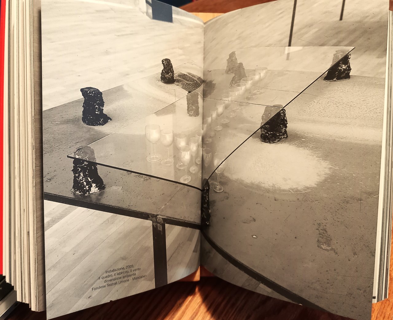 I ed.: gennaio 2008. Catalogo pubblicato in occasione delle mostre tenutesi presso l'Accademia delle Arti del Disegno di Firenze nel febbraio 2008 e presso la Fornace Pagliero di Castellamonte (TO) nel settembre-ottobre 2008. VIII/ (16) rosse+(336)+(16) rosse/ brossura satinata con ampi risvolti, grafica in rosso/b/n ed illustrata ai piatti (primo piatto, a coll.: R. Dragomirescu, Installazione, 2007, dimensioni ambiente. Sale storiche di Palazzo Bricherasio, Torino - primo risvolto, in b/n: il Profeta Elia, part., 1425 - ultimo piatto, in b/n). Con allegati due fogli ripiegati più volte: uno contenenti saggi (v. sopra, nell'indice) e uno con un disegno in b/n dell'artista, alcune foto in b/n di installazioni dell'artista e una poesia del poeta rumeno (1920-70) Paul Celan. Illustrazioni in b/n e colori. Fotografie di AA.VV.. Progetto grafico: Radu Dragomirescu, Alessandro Geda. Stato buono-ottimo. Indice: Catalogo: Radu Dragomirescu. Intervista/ Interview; di/ by Anna D'Agostino - Breve biografia- Mostre personali-Mostre collettive-Cataloghi delle mostre personali-Articoli-Commissioni pubbliche e private --- Pieghevole allegato: La caverna; di Achille Bonito Oliva (Roma, 1978) - Segno e disegno della dolce morte. Radu Dragomirescu: una quasiretrospettiva (Bucarest, giugno 1998) - testo di Mauro Panzera (Ravenna, 1996) - Per un museo ideale; di Valerio Dehò (Firenze, 2004) - Un uomo venuto dalla notte dei tempi; di Franco Fanelli (Asti, 2001): L'eterno presente-Sognare il mondo di domani.