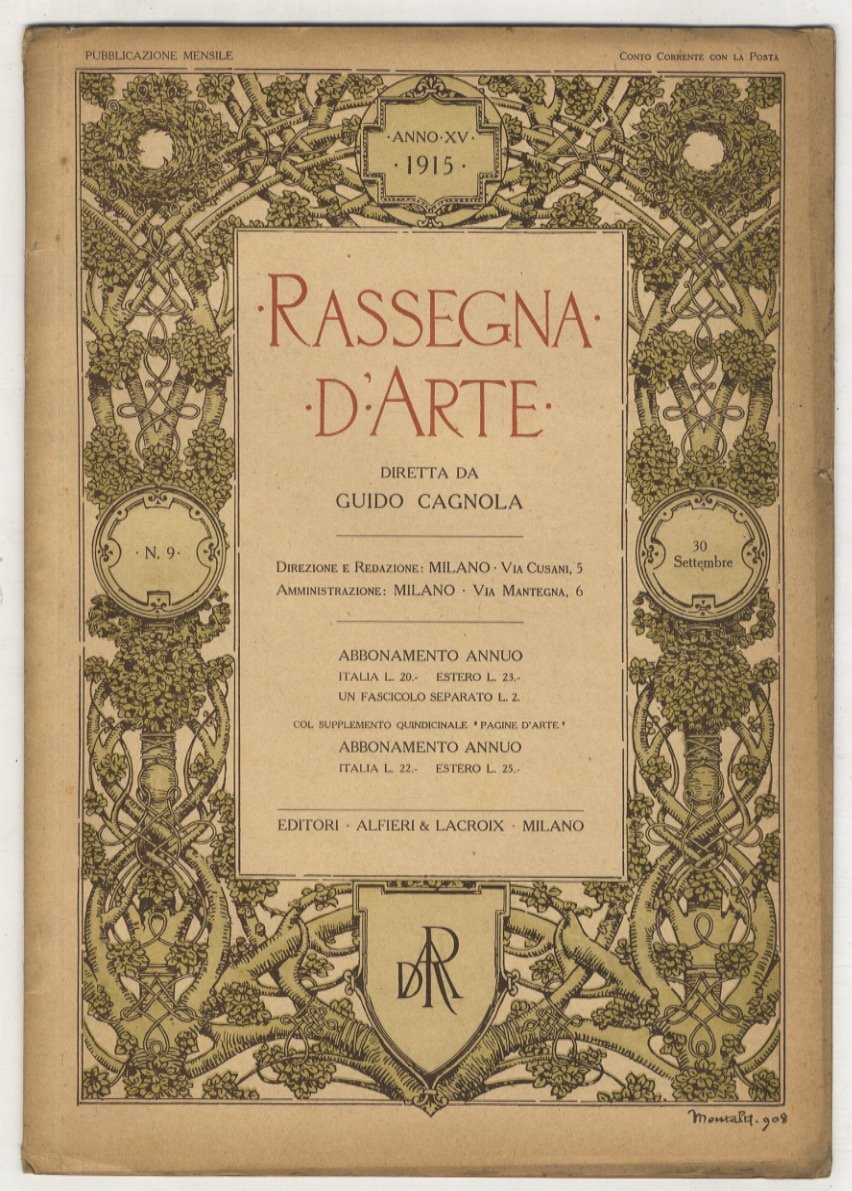 RASSEGNA d'Arte. Diretta da Guido Cagnola e Francesco Malaguzzi Valeri. Anno XIV. 1914. Fascicoli da 3 a 12 [mancano i fascicoli 1 e 2]. [Legato con:] RASSEGNA d'Arte. Diretta da Guido Cagnola e Francesco Malaguzzi Valeri. Anno XV. 1915. Fascicoli da 1 a 6, 8, 9. [mancano i fascicoli 7, 10, 11, 12].
