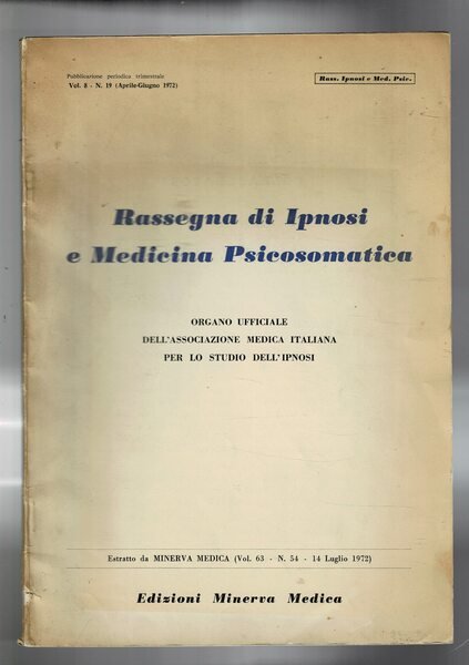 Rassegna di ipnosi e medicina psicosomatica. Trimestrale n° lug. 1972. Aspetti e problemi medico legali dell'ipnosi; l'ipnosi in ostetricia; guaritori e "chirurghi-medium" filippini; l'assistenza psicologica dello sciatore da competizione alpina. | Libri antichi e moderni | Granone Franco Direttore.