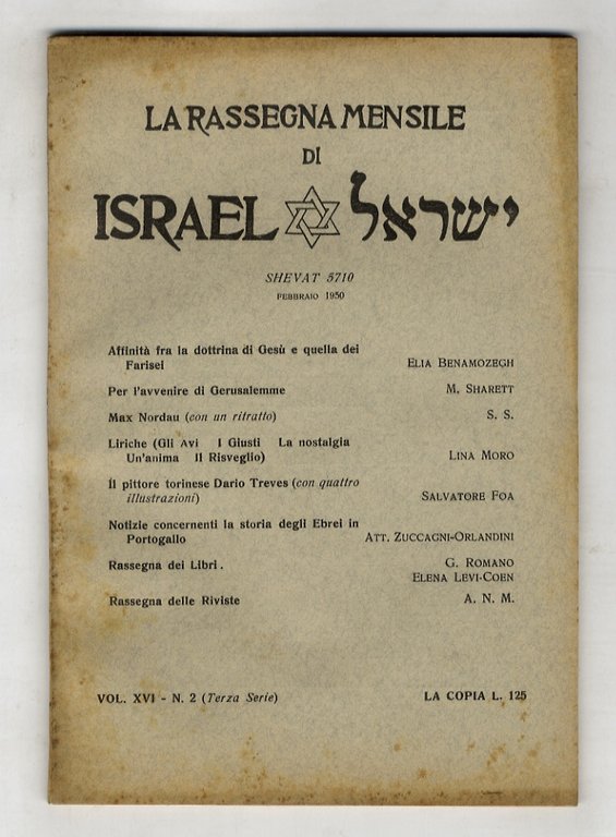 RASSEGNA (LA) mensile di Israel. Vol. XVI. N. 2 (Terza serie). Shevat 5710. Febbraio 1950.