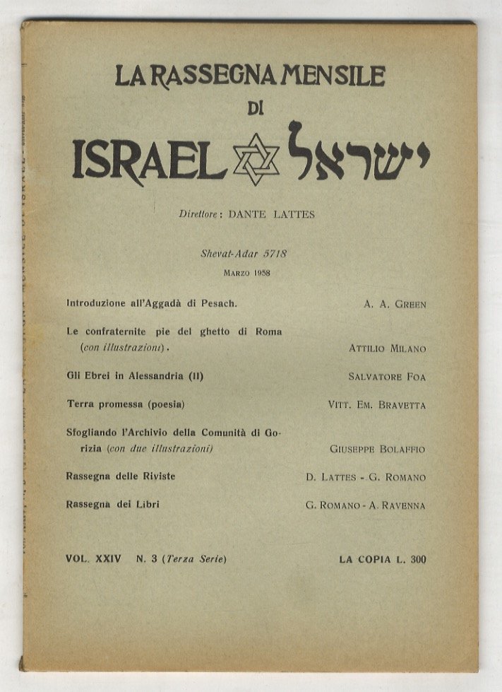 RASSEGNA (LA) mensile di Israel. Vol. XXIV. Dal n. 1 (Terza serie). Gennaio 1958 (Teveth 5718) al n. 11-12 (Terza serie) Novembre-dicembre 1958 (Kheshvàn-Teveth 5719). [Annata completa].
