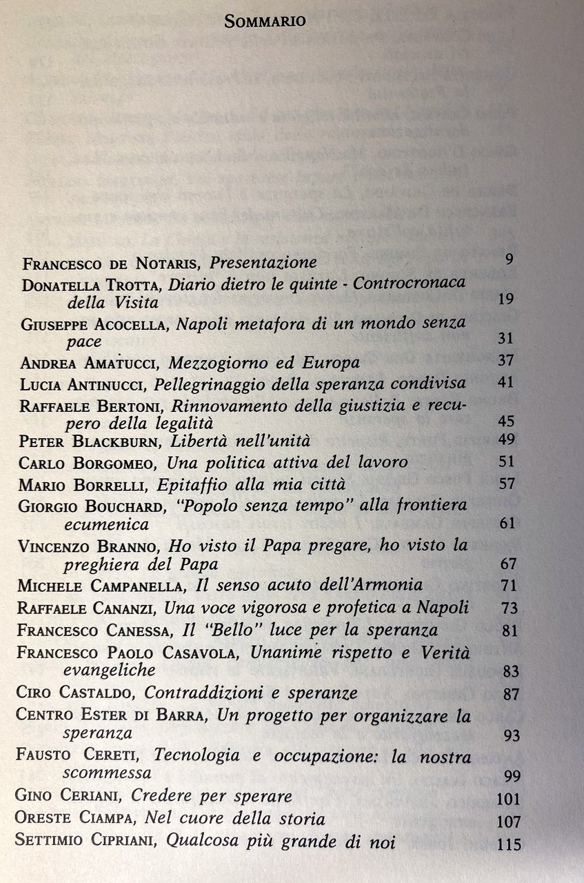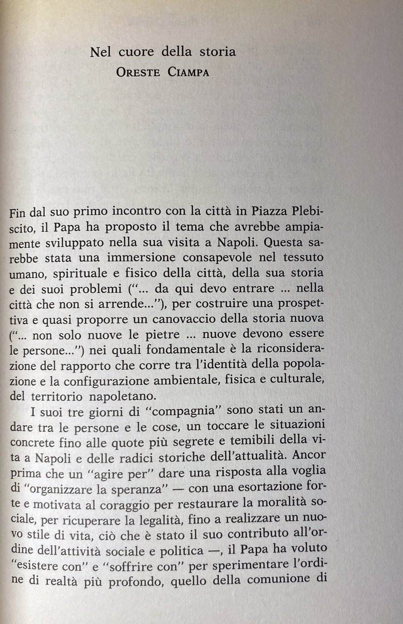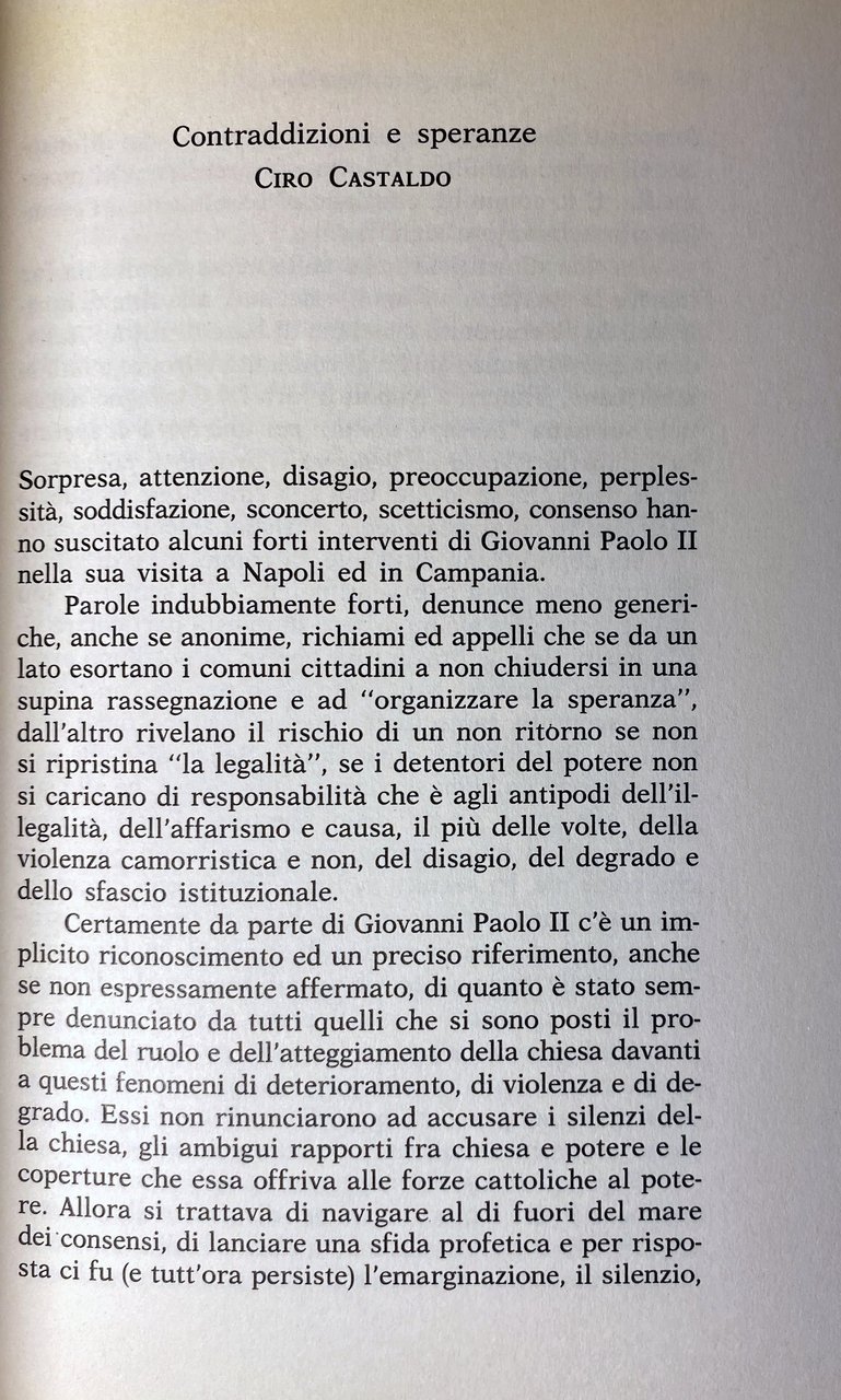 - Letteratura cristiana, Papi, Giovanni Paolo II, Wojtyla, Papa, Viaggio, Visite papali, Holy see, Encicliche, Discorsi, Napoli, Evangelizzazione, Solidarietà, Etica del lavoro, Anni Novanta, Enciclica sociale, Testimonianze, Cultura, Dialogo, Volontariato, Giovani, Intellettuali, Chiesa cattolica, Cristianesimo, Religione, Religioni, Cattolicesimo, Teologia, Società civile, Diario, Cronaca, Pace, Pellegrinaggio, Speranza, Fedeli, Fede, Legalità, Libertà, Unità, Politica attiva, Ecumenismo, Preghiera, Profezie, Verità, Disoccupazione, Presbiterio, Sud, Impegno sociale, Salvezza, Resistenza, Riscatto, Spiritualità, Bene comune, Messaggi, Missione, Pastorale, Diritti umani, Credenti, Futuro, Problemi sociali, Alloggio, Casa, Povertà, Emarginazione, Amore, Integrazione, Tolleranza, Concilio Vaticano, Multiculturalismo, Documenti, Preti, Libri fuori catalogo, Collezionismo, Opere generali, Incontri