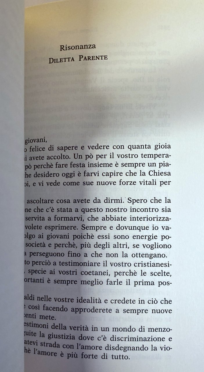 Soggetti: Letteratura cristiana Papi Wojtyla Giovanni Paolo II Papa Viaggio Visite papali Encicliche Discorsi Napoli Evangelizzazione Solidarietà Etica del lavoro Anni Novanta Enciclica sociale Rerum Novarum Testimonianze Cultura Dialogo Responsabilità Agire pubblico Volontariato Giovani ACI Padri Dehoniani Intellettuali Chiesa cattolica Cristianesimo Religione Religioni Cattolicesimo Teologia Società civile Diario Cronaca Pace Mezzogiorno Europa Pellegrinaggio Speranza Fedeli Fede Giustizia Legalità Libertà Unità Politica attiva Ecumenismo Preghiera Profezie Verità Vangeli Bibbia Parabole Tecnologia Disoccupazione Presbiterio Fraternità Identità religiosa Sud Moralità collettiva Egoismo Impegno Lettera Memoria Profezia Oriente Occidente Relazioni Salvezza Scuola Resistenza Comportamento Scienza Ricerca Riscatto Spiritualità Sursum corda Parola Alleanza Bene comune Messaggi Missione Itinerario Pastorale giovanile diocesana Umanità Diritti umani Vesuvio Vangelo Virtù Dio Peguy Madre Teresa di Calcutta Credenti Futuro Problemi sociali Alloggio Casa Povertà Emarginazione Amore Donna Discriminazioni Razzismo Accoglienza Immigrati Integrazione Tolleranza Concilio Vaticano Multiculturalismo Documenti CEI Strada Ragazzi Preti Reportage Libri rari fuori catalogo Collezionismo Opere generali Riferimento Millennio Panikkar Gesù Scampia O Sole Mio Stadio San Paolo Terremoto Capodimonte Cardinale Alessio Ascalesi Incontri Piazza Plebiscito Teatro San Carlo Seminario Maggiore Ansaldo Mostra d'Oltremare Sacerdoti Seminaristi Duomo Facoltà Teologica Pozzuoli Cittadinanza Celebrazione eucaristica Holy See Christian literature Popes John Paul II Pope Journey Papal visits Encyclicals Speeches Naples Evangelization Solidarity Work ethic 1990s Social encyclical Testimonies Culture Dialogue Responsibility Public action Volunteering Young intellectuals Catholic Church Christianity Religion Religions Catholicism Theology Civil society Diary News Peace Europe Pilgrimage Hope Faithful Faith Justice Legality Freedom Unity Active politics Ecumenism Prayer Prophecies Truth Gospels Bible Parables Technology Unemployment Presbytery Fraternity Religious identity South Morality Selfishness Commitment Letter Memory Prophecy East West Relations Salvation School Resistance Behavior Science Research Redemption Spirituality Word Alliance Common good Messages Mission Itinerary Diocesan youth ministry Humanity Human rights Vesuvius Gospel Virtues God Mother Believers Future Problems Accommodation Home Poverty Marginalization Love Woman Discrimination Racism Reception Immigrants Integration Tolerance Vatican Council Multiculturalism Documents Street Boys Priests Rare books out of print Collectibles General works Reference Millennium Jesus Earthquake Cardinals Meetings Seminary Seminarians Citizenship Eucharistic celebration Ethics