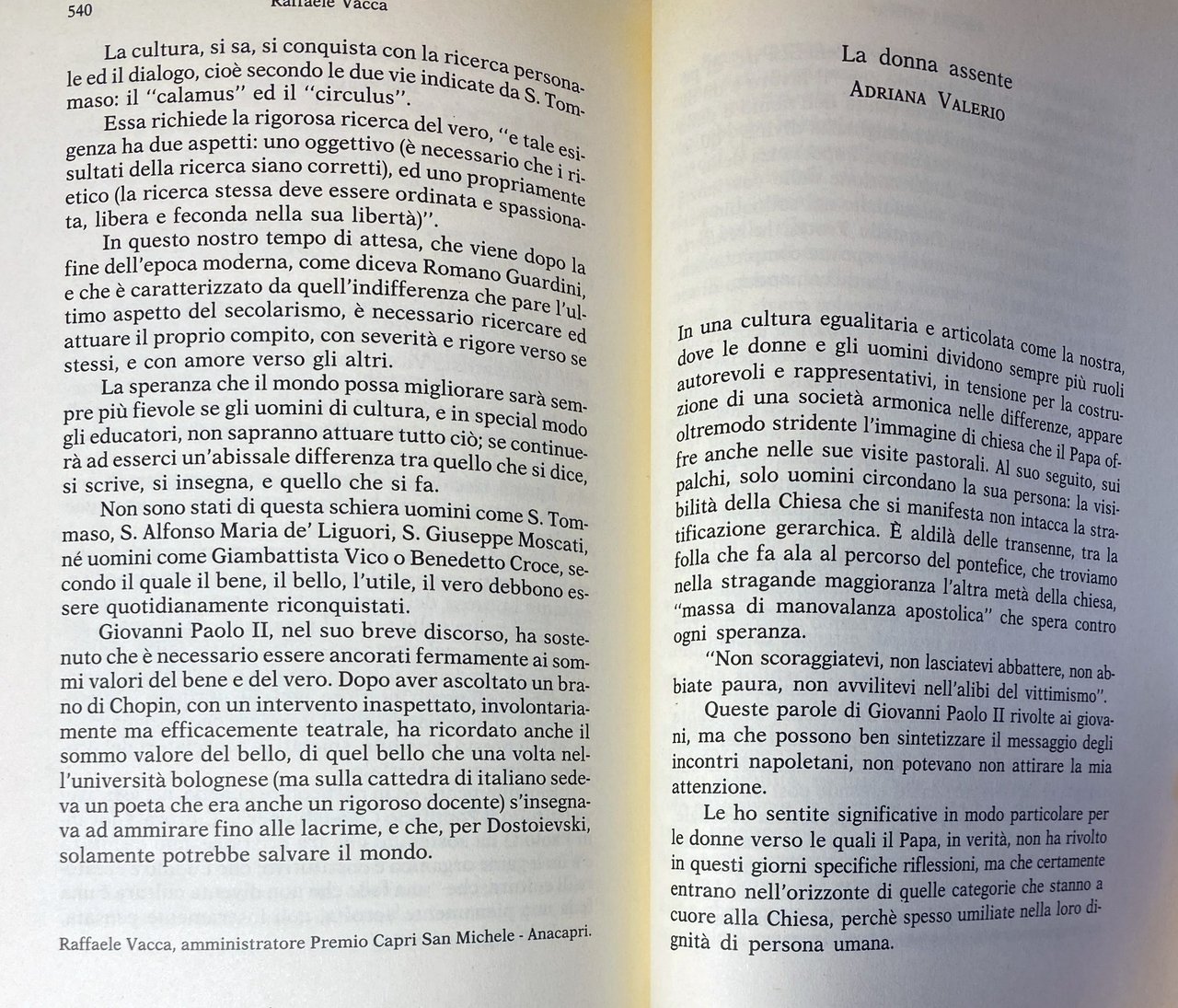 - Francesco De Notaris, Donatella Trotta, Giuseppe Acocella, Andrea Amatucci, Lucia Antinucci, Raffaele Bertoni, Peter Blackburn, Carlo Borgomeo, Mario Borrelli, Giorgio Bouchard, Vincenzo Branno, Michele Campanella, Raffaele Cananzi, Francesco Canessa, Francesco Paolo Casavola, Ciro Castaldo, Centro Ester Di Barra, Fausto Cereti, Gino Ceriani, Oreste Ciampa, Settimio Cipriani, Pasquale Colella, Luigi Compagna, Comunita Sacerdoti Focolarini, Piero Craveri, Guido D'agostino, Biagio De Giovanni, Francesco De Martino, Renato De Simone, Roberto De Simone, Mario Di Costanzo, Giacomo Di Gennaro, Margherita Dini Ciacci, Bruno Forte, Fabrizio Forte, Luigi Fusco Girard, Giuseppe Galasso, Giuseppe Gambale, Roberto Gatti, Agostino Giovagnoli, Paolo Giuntella, Antonietta Giusti, Pasquale Giustiniani, Enzo Giustino, Carlo Greco, Antonio Iodice, Marco Ivaldo, Domenico Jervolino, Giorgio Jossa, Luigi M. Lombardi Satriani, Gerardo Marotta, Alfredo Marranzini, Gilberto Antonio Marselli, Cesare Martino, Nicola Martino, Giuliana Martirani, Antonio Mascoli, Aldo Masullo, Giuseppe Mattai, Eugenio Mazzarella, Luigi Gerardo Napolitano, Rodolfo Nicolaus, Adolfo Pagano, Nicola Pagliara, Diletta Parente, Michelangelo Peláez, Vincenzo Pelvi, Raffaele Perrone Capano, Giuseppe Perrotta, Donato Petti, Luigi M. Pignatiello, Lucio Pirillo, Domenico Pizzuti, Nello Polese, Giancarlo Rinaldi, Mario Rusciano, Clemente Russo, Luigi Salerno, Gaetano Salvatore, Ernesto Santucci, Ciro Sarnataro, Stefania Sessa, Vincenzo Maria Siniscalchi, Luciano Sommella, Vittorio Sommella, Antonio Squitieri, Luigi Tabasco, Mario Tarallo, Suore di Madre Teresa Di Calcutta, Fulvio Tessitore, Federico Tortorelli, Valerio Tozzi, Elisa Turco, Boris Ulianich, Corrado Ursi, Raffaele Vacca, Adriana Valerio, Agostino Vallini, Ferdinando Ventriglia, Antonio Villani, Antonio Vitiello, Giancarlo Zizola, Saverio Di Paola
