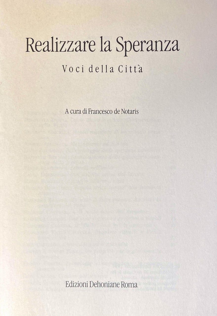 Titolo: Realizzare la Speranza. Voci della Città