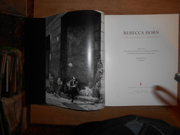 REBECCA HORN. The Glance of Infinity. Zurich, Berlin, New York, Kestner Gesellschaft Scalo, 1997. In-4°, cartonato edit. nero con titoli al dorso e sul piano, sovracopertina ill. a col. 392 pp. con numerose illustrazioni a colori molte a piena pagina. Testo tedesco. Ottimo esemplare. Uff. B - II - 2 - 2 carc.