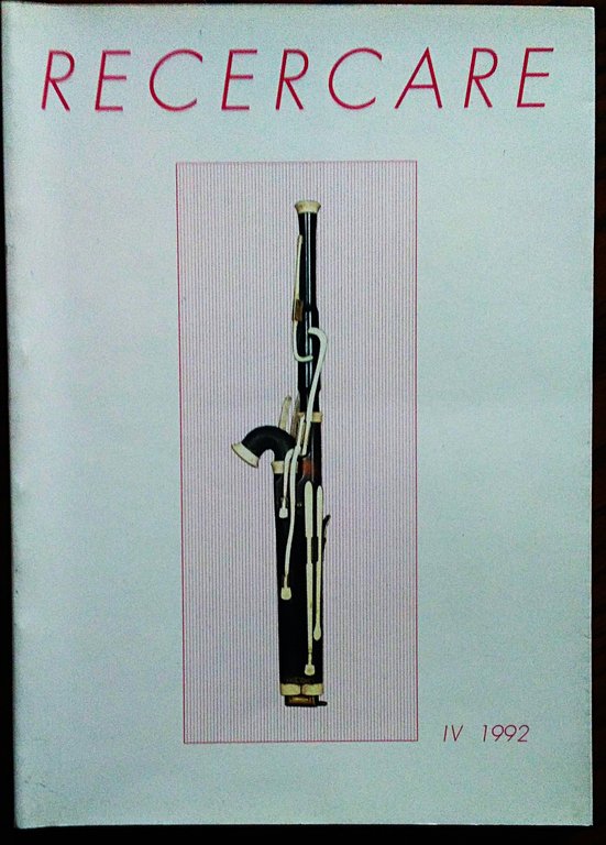 Recercare. Rivista per lo studio e la pratica della musica antica. Journal for the study and practice of early music. N. IV, 1992