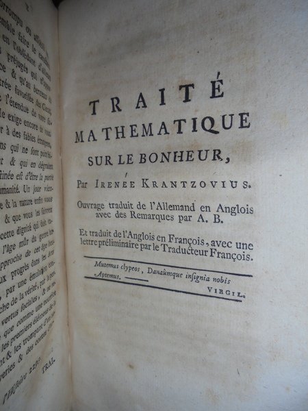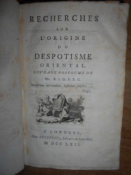 Recherches sur l' origine du Despotisme Oriental. Traité mathematique sur le bonheur par Irenée Krantzovius