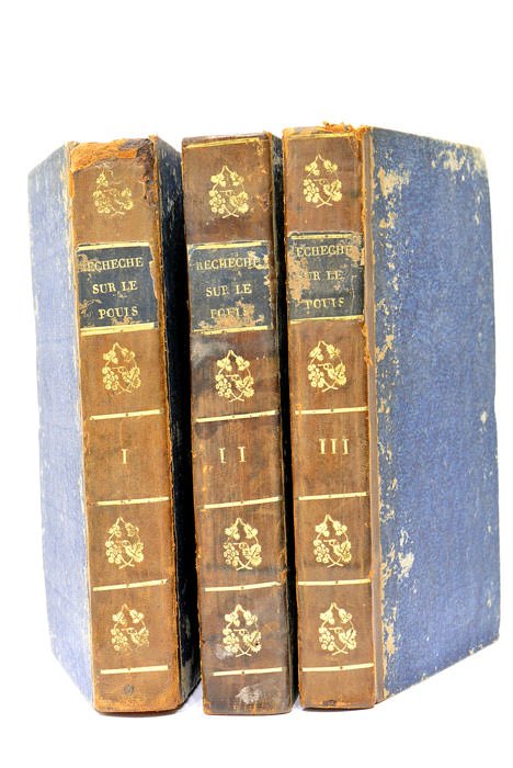 3 tomes. Tome 1: XXVIIJ. 356 pages. Tome 2: VIIJ. 388 pages. 3 feuillets. Tome 3: 323 pages. (17x10 cm). Demi-veau. Dos lisse orné et doré. Tranches rouges. Coins émoussés. Plats frottés. Quelques tàches éparces. Bordeu, prédécesseur de Bichat, est considéré comme le fondateur de la physiologie pathologique en France. Dans ces Recherches., il accorde une grande importance à l'observation du pouls dans l'élaboration du diagnostic. Tome 1,2 et 3 seuls.