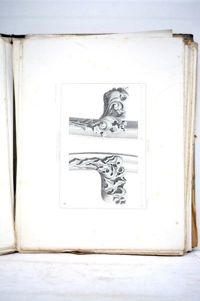 Tome 2 seul. En feuilles. 2 feuillets. 104 planches illustrées. (36,5x26,5cm). Chemise en cartonnage, dont le dos est en percaline. En feuilles. Couverture imprimée de l'éditeur. Couverture usagée. Taches sur les plats. Charnière supérieure un peu fendue. Coupes frottées. Coins mollement épointés. Légères rousseurs et taches à l'intérieur. Etat intérieur agréable. Plaisant exemplaire dans une chemise en cartonnage qui mérite une restauration. Charmantes illustrations à l'intérieur.
